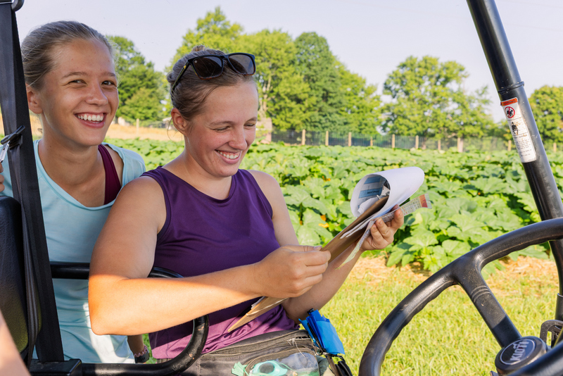 Gallery 2025 Outstanding Seed Hand Pollination CrewEmmaline bagging flower blossoms for tomorrow's hand pollinationsHerb prepares a male flower for a hand pollinationAudrey prepares a male flower for a hand pollinationFemale pumpkin flowerLizzy transfers pollen from male flower anther to female flower stigmaHerb transfers pollen from male flower anther to female flower stigmaLizzy closes and ties the female flower corolla after hand pollination in order to prevent contaminationLizzy begins to re-bag a female flower after hand pollination in order to prevent contaminationHerb re-bags a female flower after hand pollination in order to prevent contaminationLizzy records hand pollination dataLizzy identifies a completed hand pollinationCascade identifies a completed hand pollinationEmily ensures there is no cross contamination between individual hand pollinations.Emily helps a customer place a seed orderEmmaline pre-packages pumpkin seed in advance of order fulfillmentEmmaline scans a QR code during order fulfillment