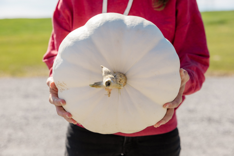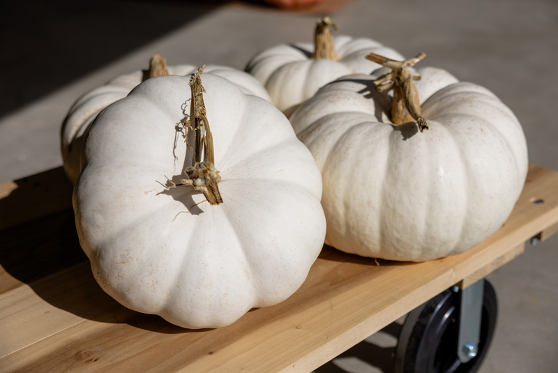 White, flat, lobed fruit great for stacking.